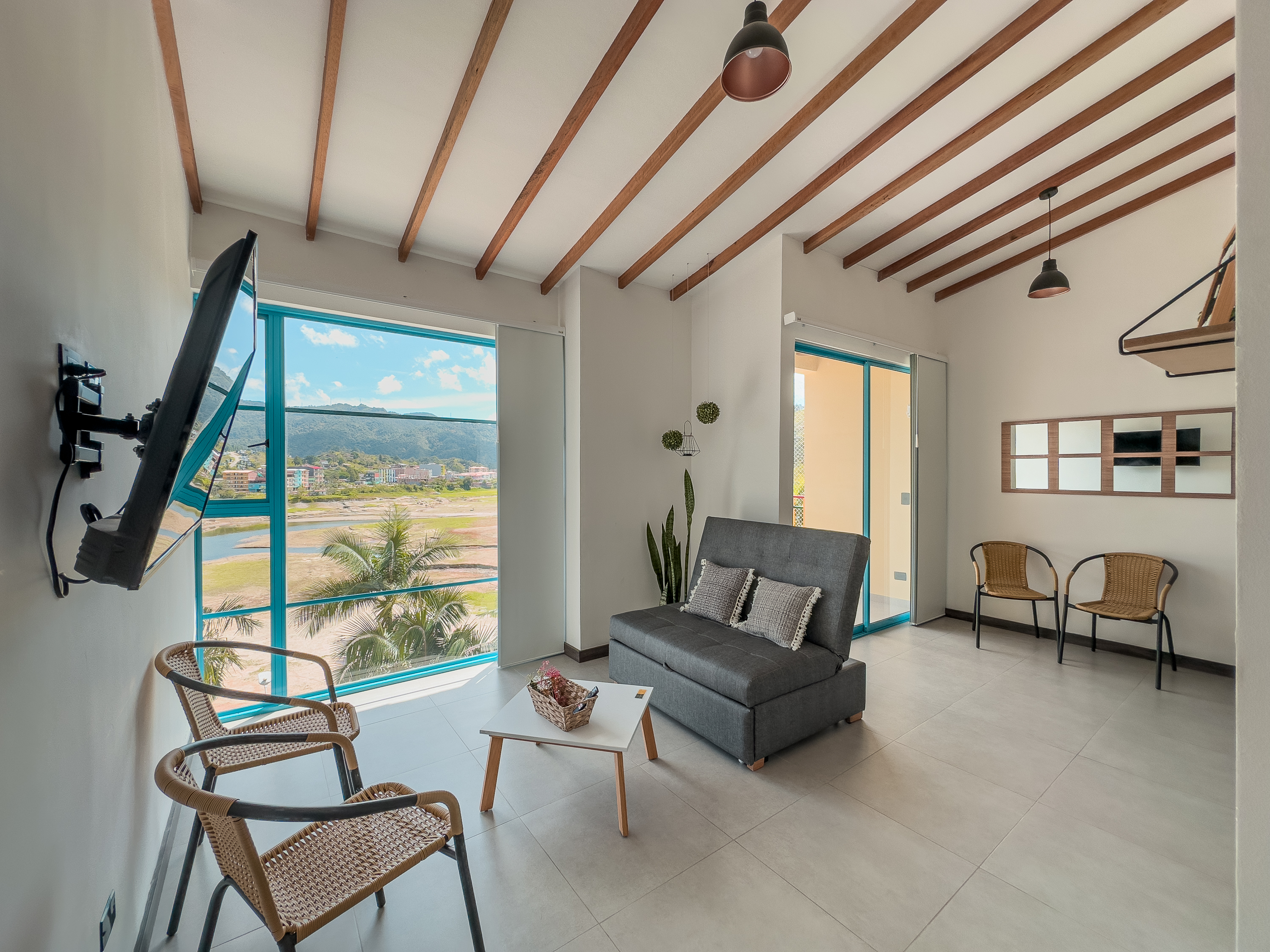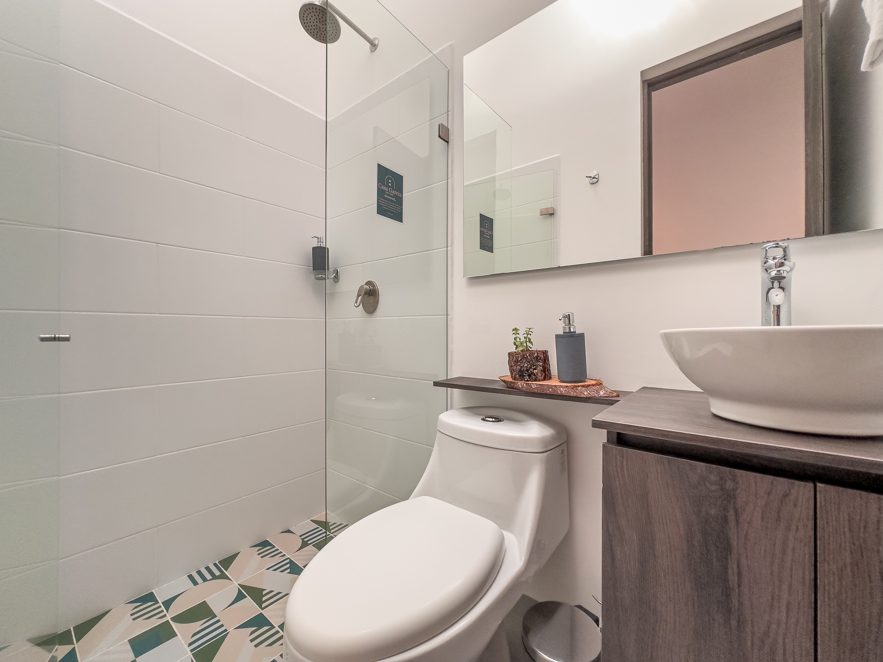 Apartamento de 2 habitaciones, baño social y baño en la habitación principal, balcón, cocina y zona de ropas.