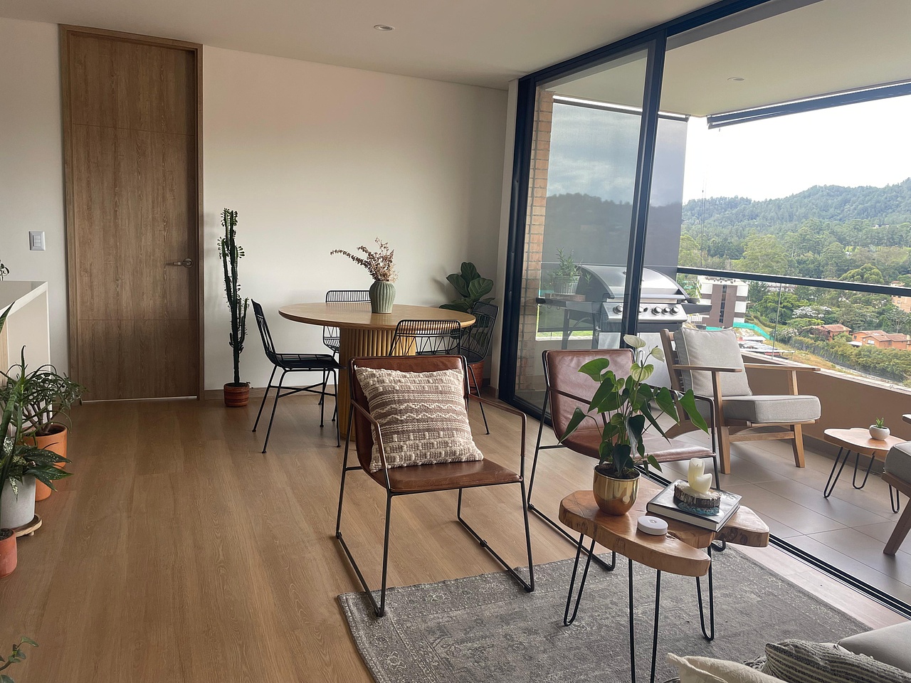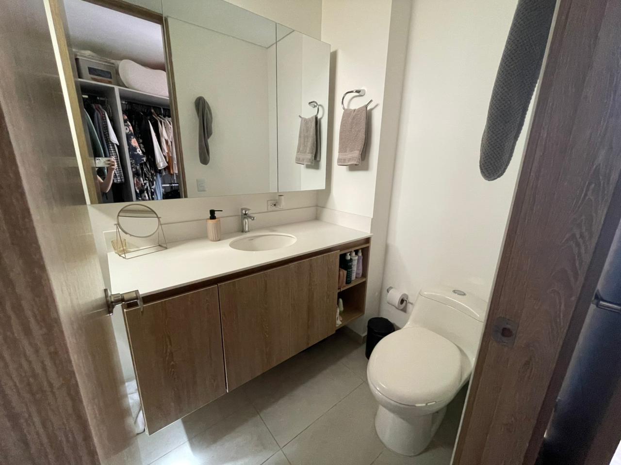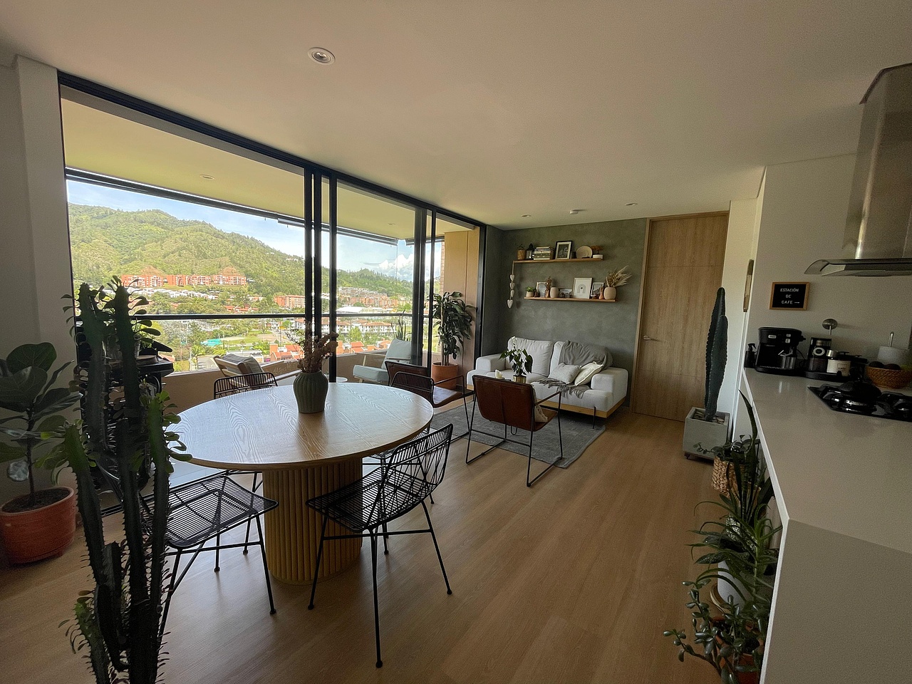 Cuenta con dos alcobas, donde la habitación auxiliar no tiene clóset y puede funcionar también como oficina cerrada, además de dos baños completos, sala comedor y cocina de generosas dimensiones. Dispone de balcón con vista asegurada hacia el pueblo y la montaña, un parqueadero cubierto y un cuarto útil. La unidad residencial ofrece coworking, salón social, zonas húmedas y gimnasio, y se encuentra en una ubicación estratégica, muy cerca al parque principal del municipio, en un sector tranquilo y de fácil acceso pavimentado.