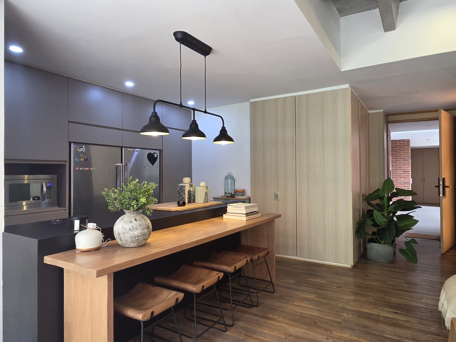 Dispone de 3 habitaciones con baño privado (principal con vestier), baño social, alcoba de servicio con baño, amplia sala-comedor, cocina abierta, balcón y zona de ropas. Excelente iluminación natural y espacios generosos. Incluye cuarto útil y 2 parqueaderos.