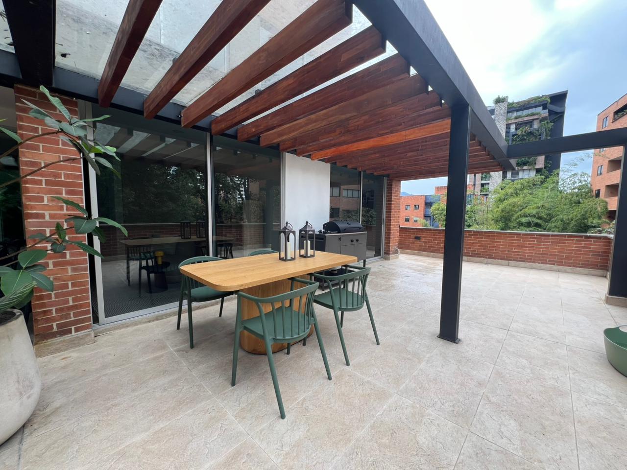 Exclusivo apartamento ubicado en el sector Alejandría, en Medellín. Cuenta con 134 m² construidos más una espectacular terraza privada de 111 m², para un total de 245 m².