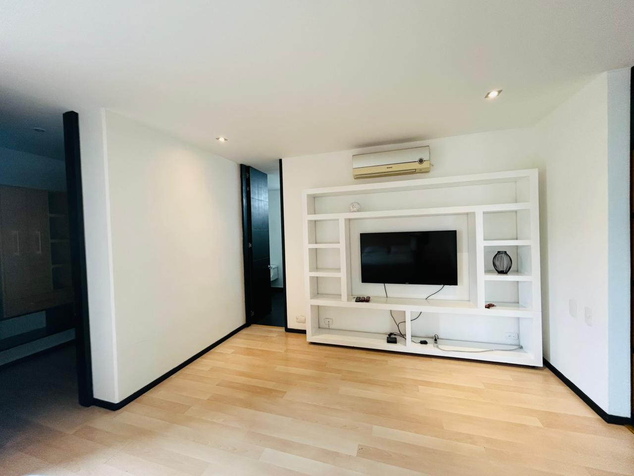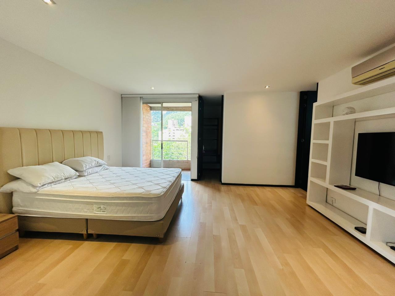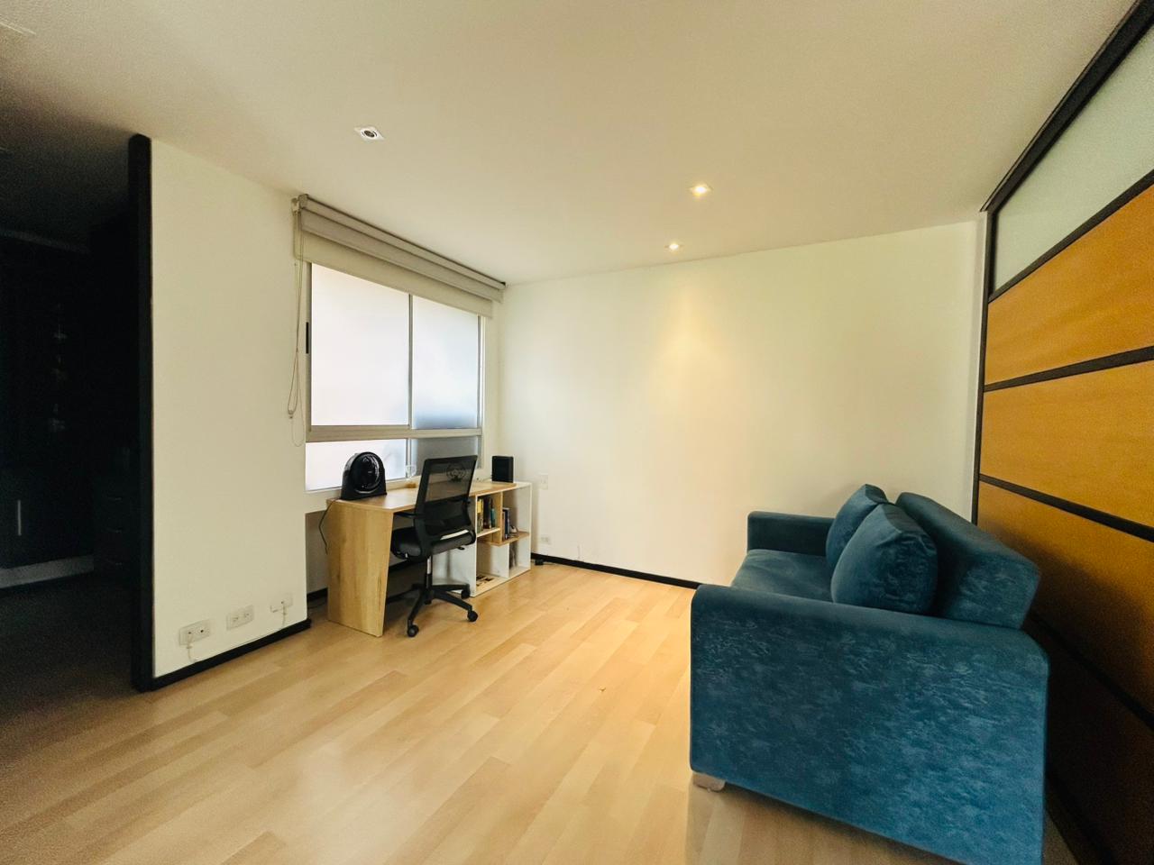 Cuenta con 2 habitaciones más estudio y habitación de servicio con baño. La habitación principal dispone de vestier, baño privado con jacuzzi, estudio integrado y balcón privado. La segunda habitación tiene baño privado y vestier. Incluye sala–comedor amplia, espacio de cava o licorera, cocina integral, baño social y zona de ropas independiente.