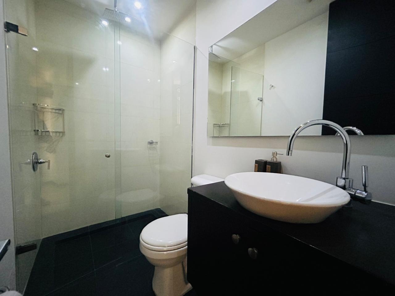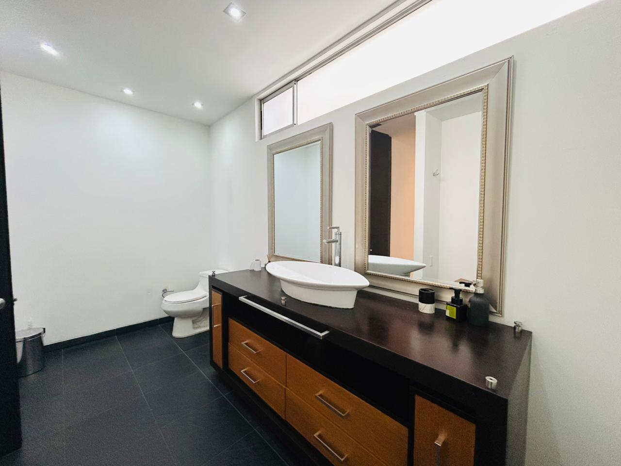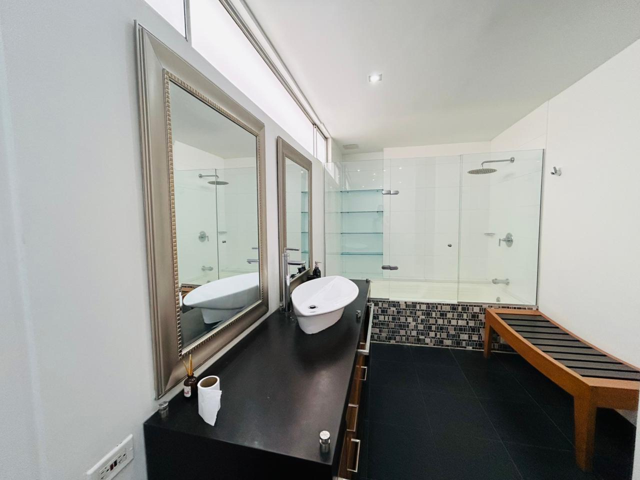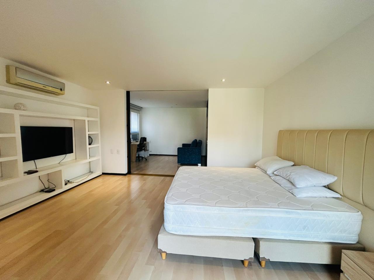 Cuenta con 2 habitaciones más estudio y habitación de servicio con baño. La habitación principal dispone de vestier, baño privado con jacuzzi, estudio integrado y balcón privado. La segunda habitación tiene baño privado y vestier. Incluye sala–comedor amplia, espacio de cava o licorera, cocina integral, baño social y zona de ropas independiente.