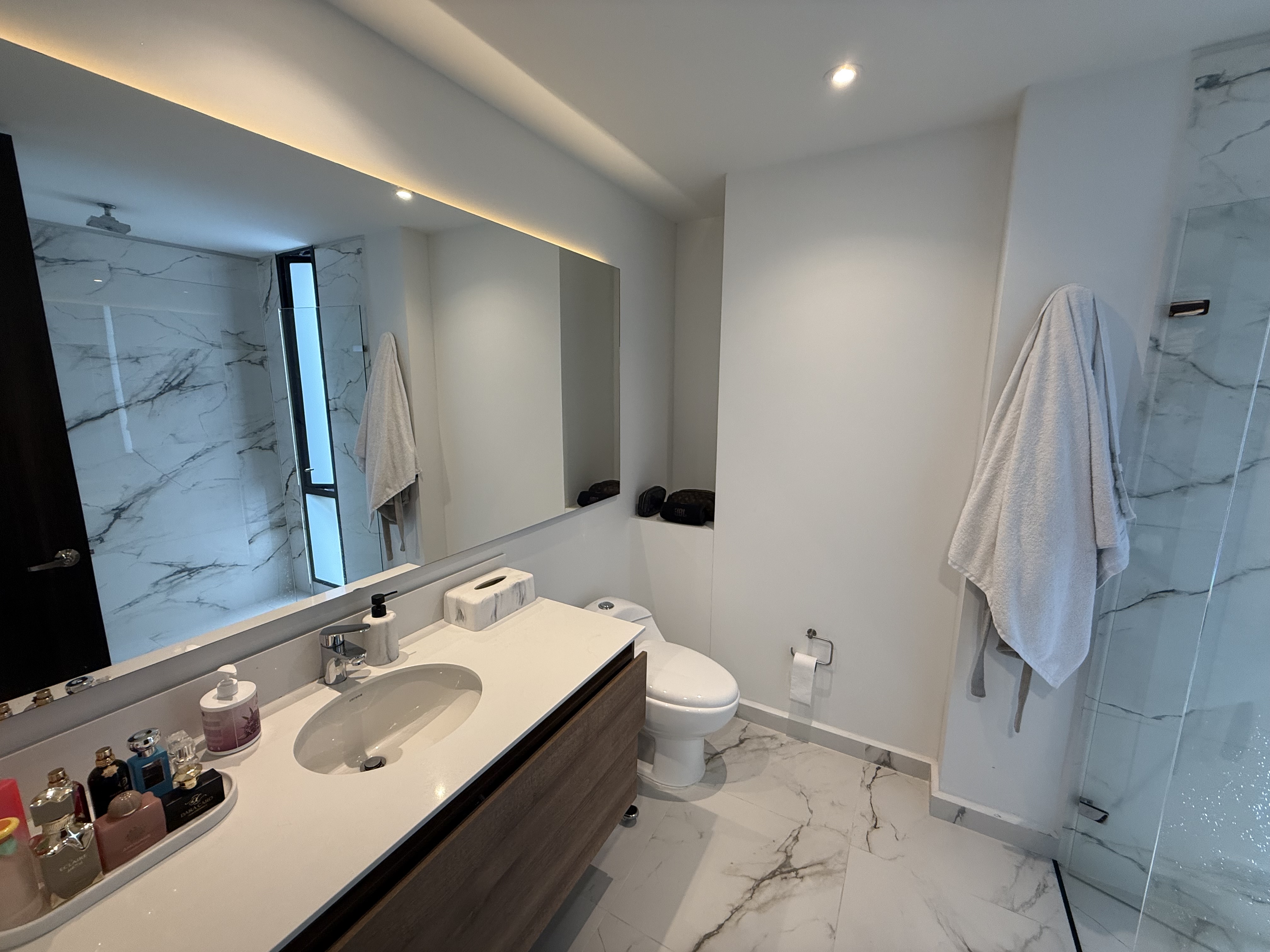 El apartamento tiene una distribución moderna con sala–comedor integrada a cocina abierta, ideal para compartir en familia o con amigos. Dispone de 2 habitaciones, cada una con baño privado y vestier, además de baño social, lo que brinda mayor comodidad para residentes y visitantes. También incluye cuarto útil y 2 parqueaderos.