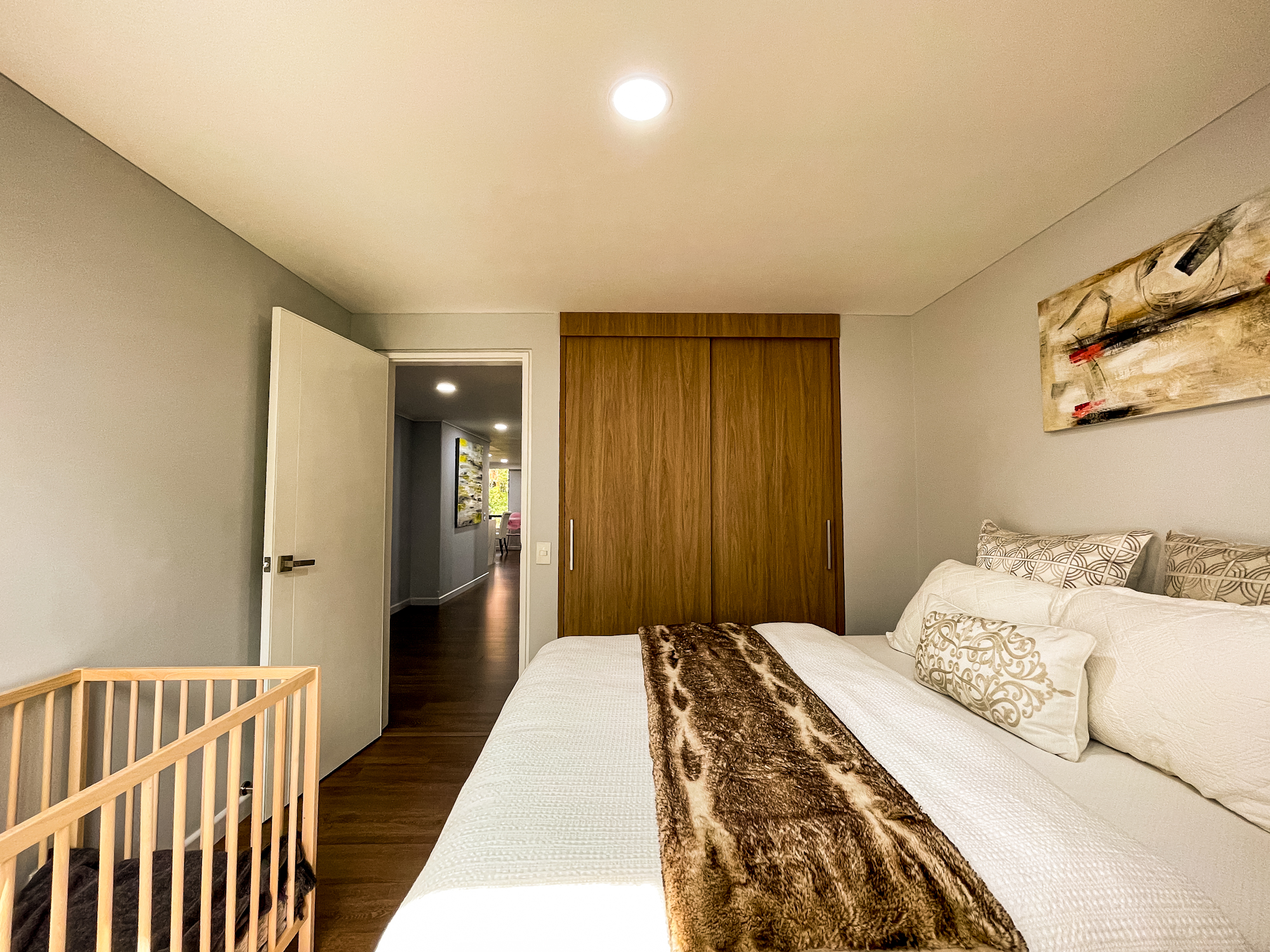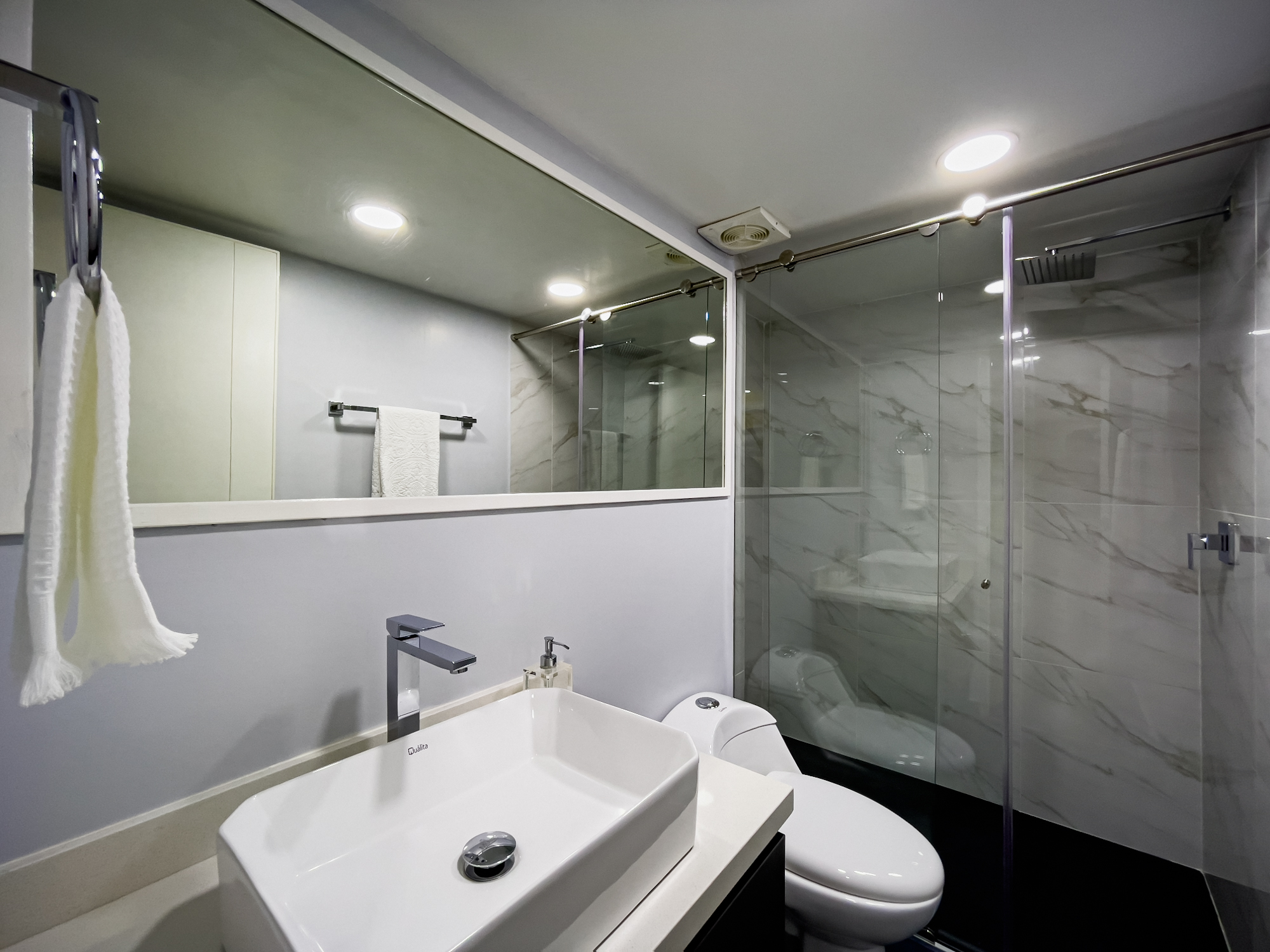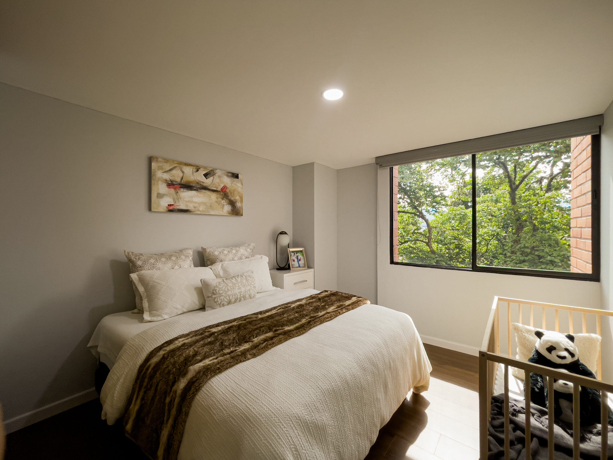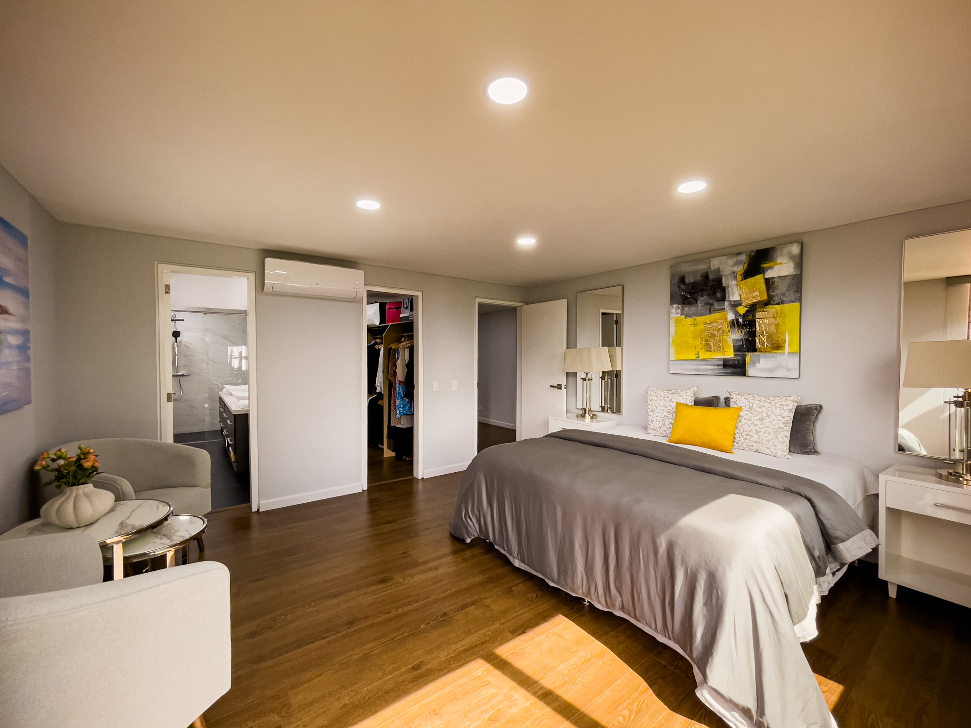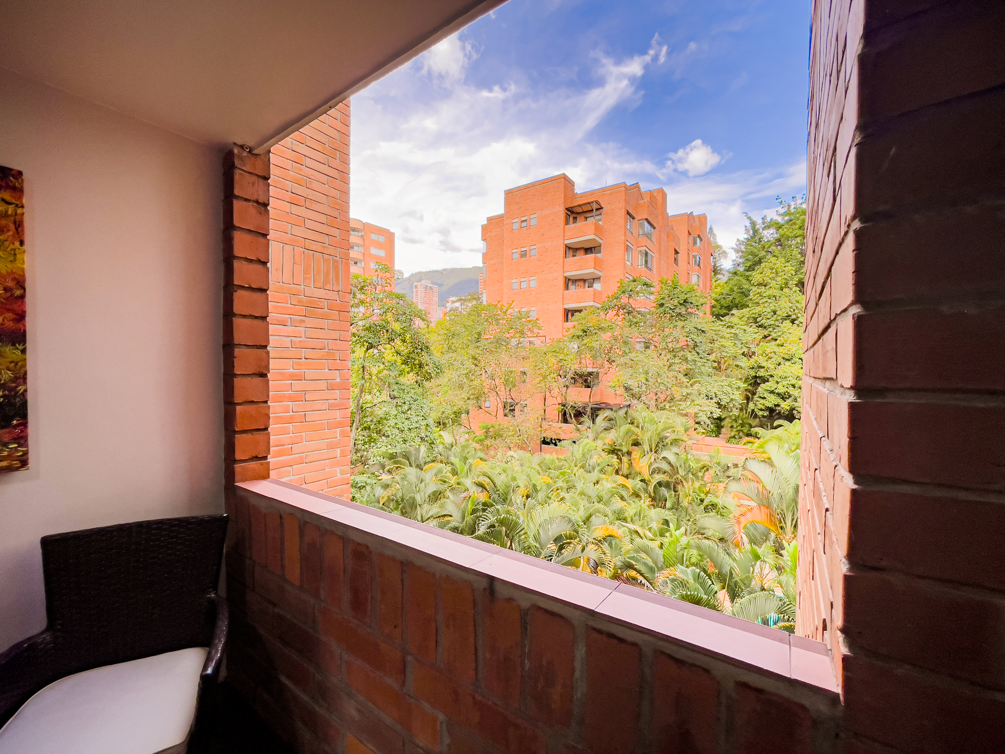 Cuenta con 3 habitaciones (todas con salida a la terraza), 3 baños, sala-comedor, cocina con isla y zona de ropas independiente. Habitación principal con aire acondicionado.