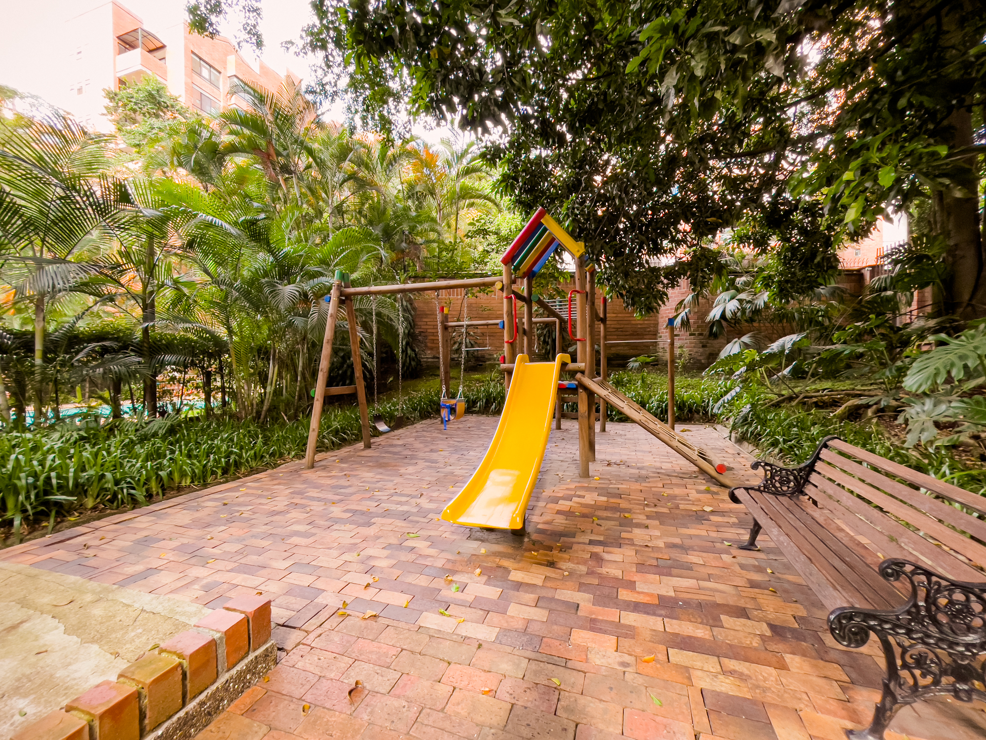 Edificio con zonas comunes: piscina, parque infantil, salón social, plaza deportiva, zonas verdes, portería, vigilancia y ascensor.