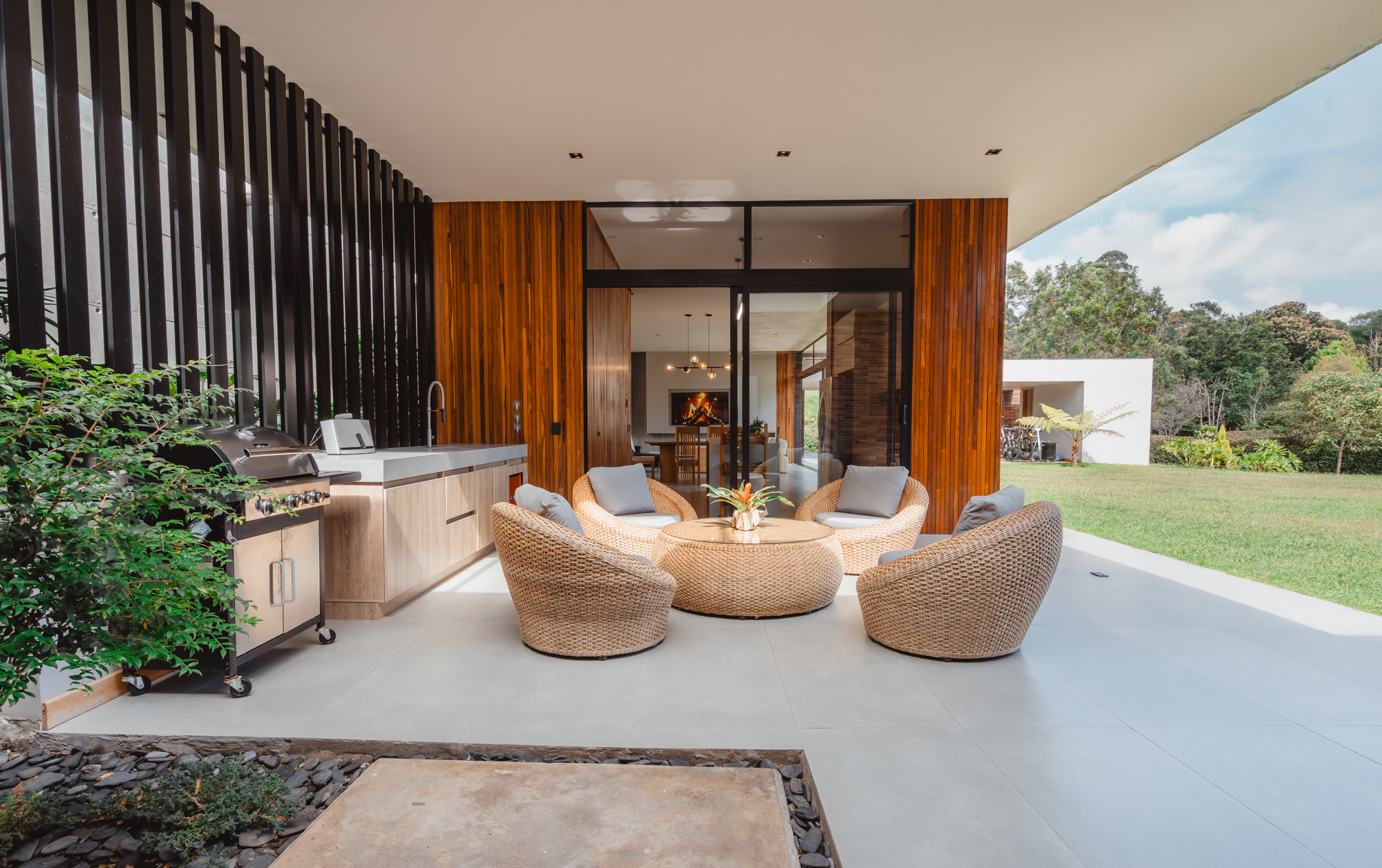 En su zona exterior ofrece un completo espacio BBQ equipado, turco y amplias zonas verdes, ideales para el descanso y la vida social. Parqueadero para 3 vehículos.