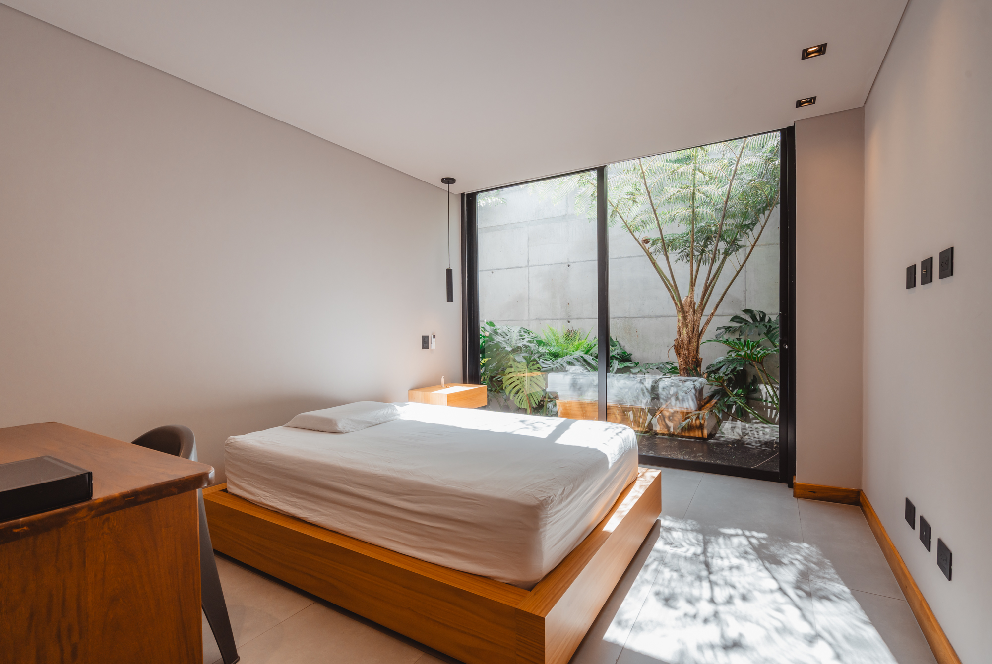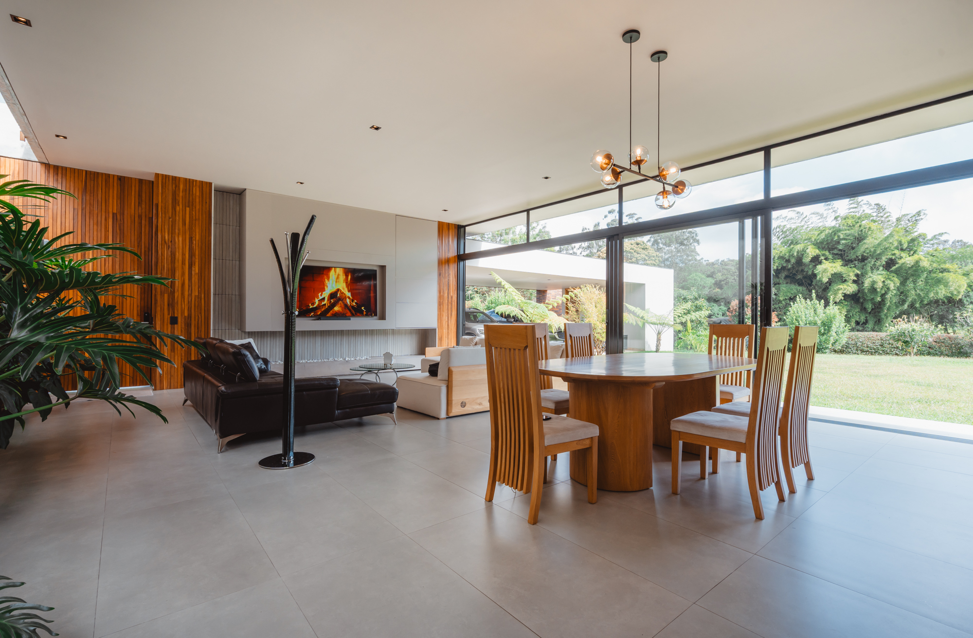 Cuenta con un lote de 2.400 m² y 460 m² construidos, con una arquitectura sobria y elegante. Dispone de 4 habitaciones principales, cada una con baño privado, vestier y cortinas eléctricas, además de una habitación independiente para visitas o servicio. Incluye baño social, sala de TV, amplios espacios de sala y comedor, cocina integral con alacena, zona de ropas y cuarto útil.