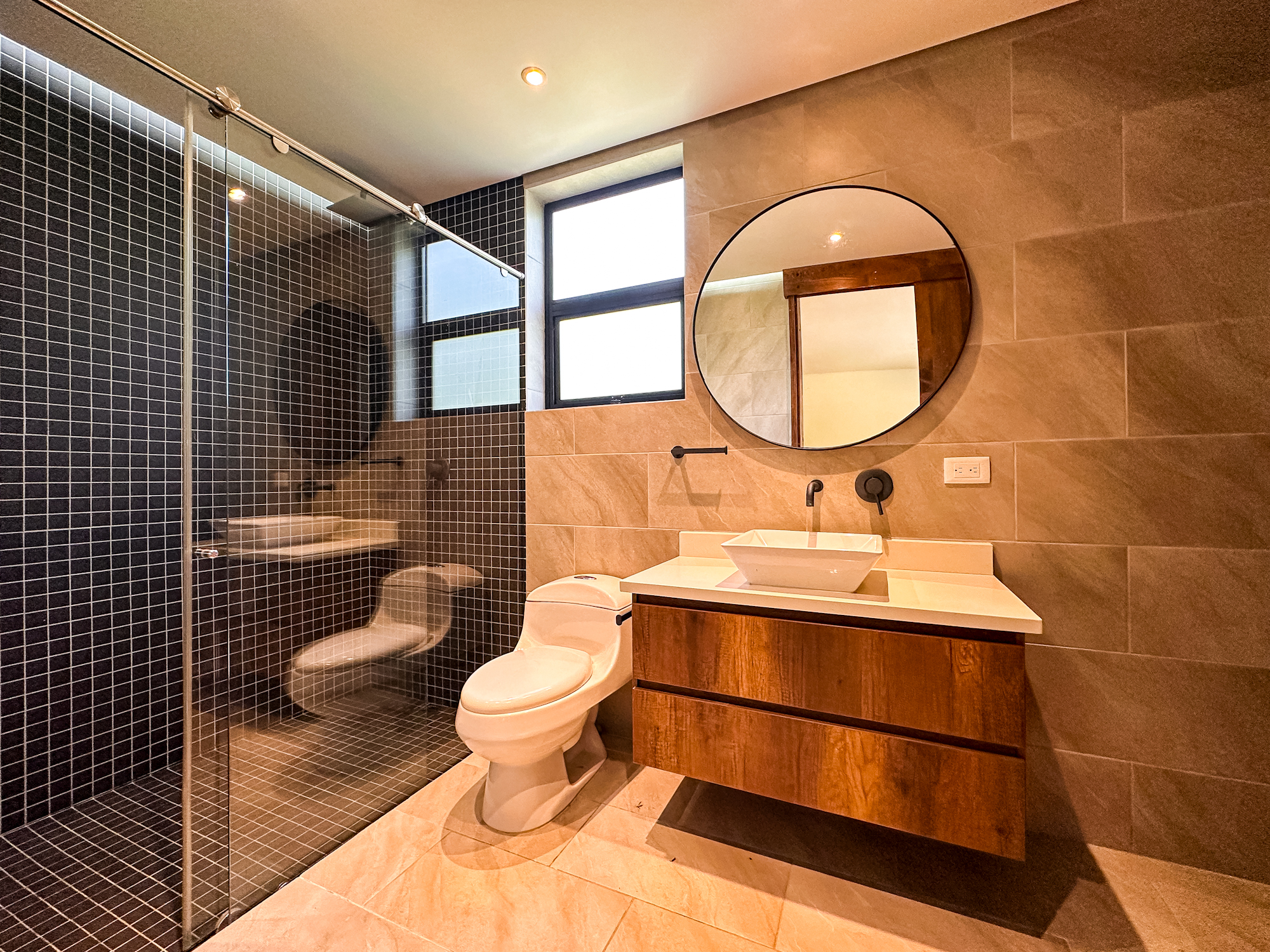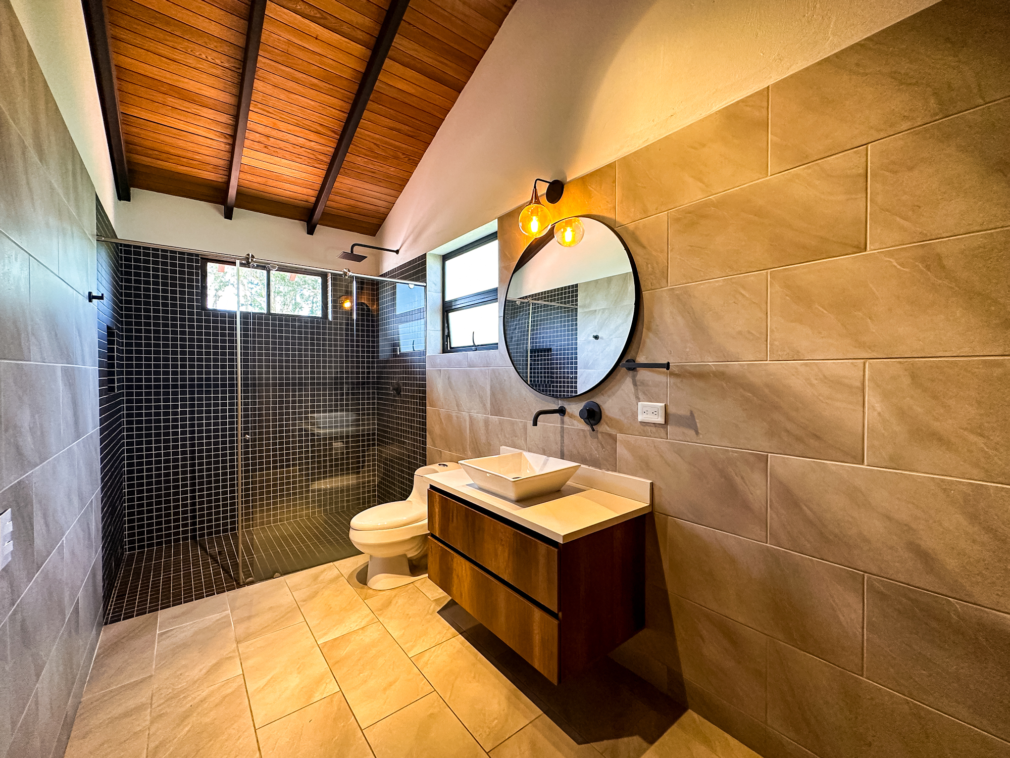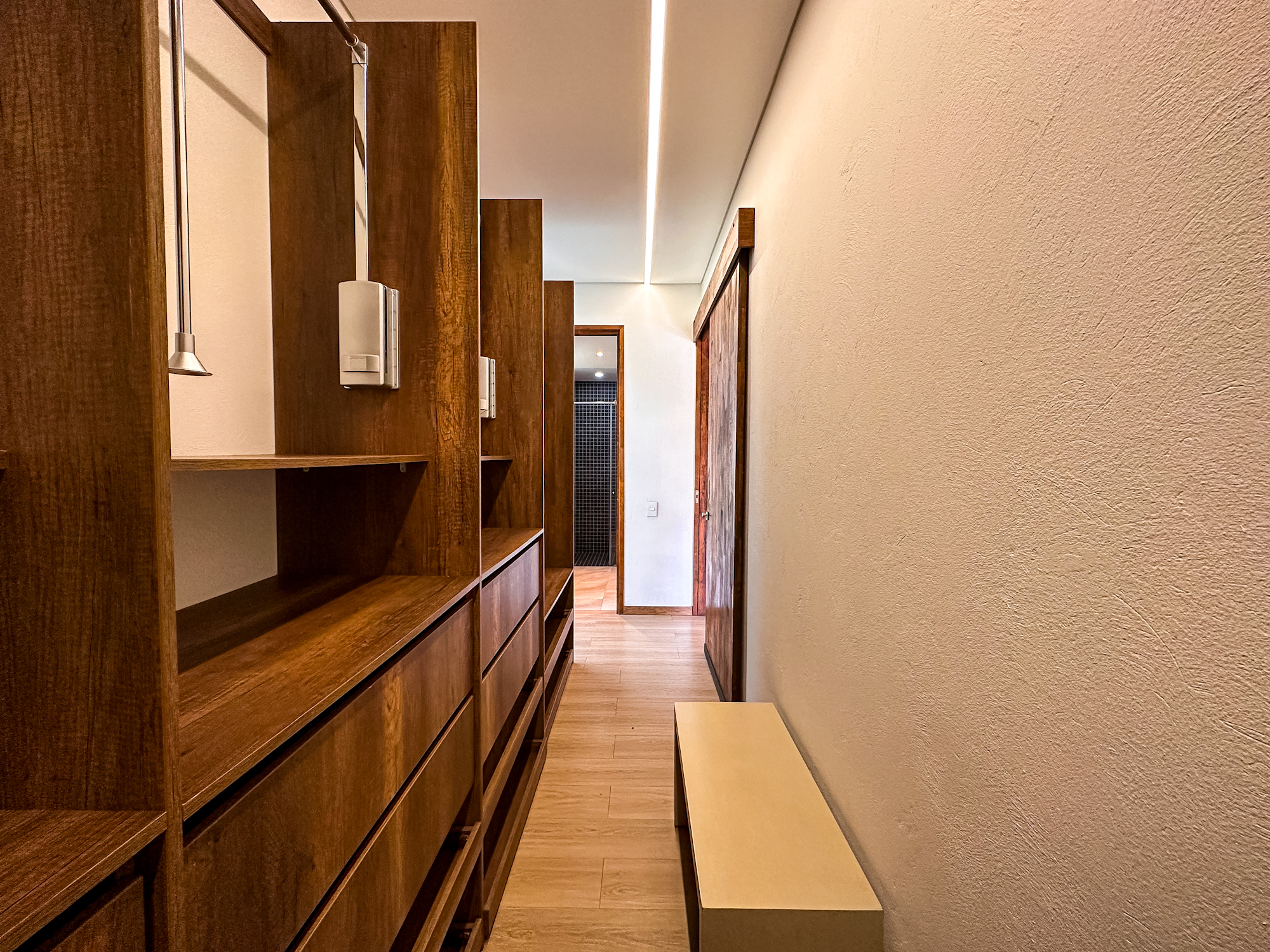 • 3 habitaciones, cada una con baño y vestier.