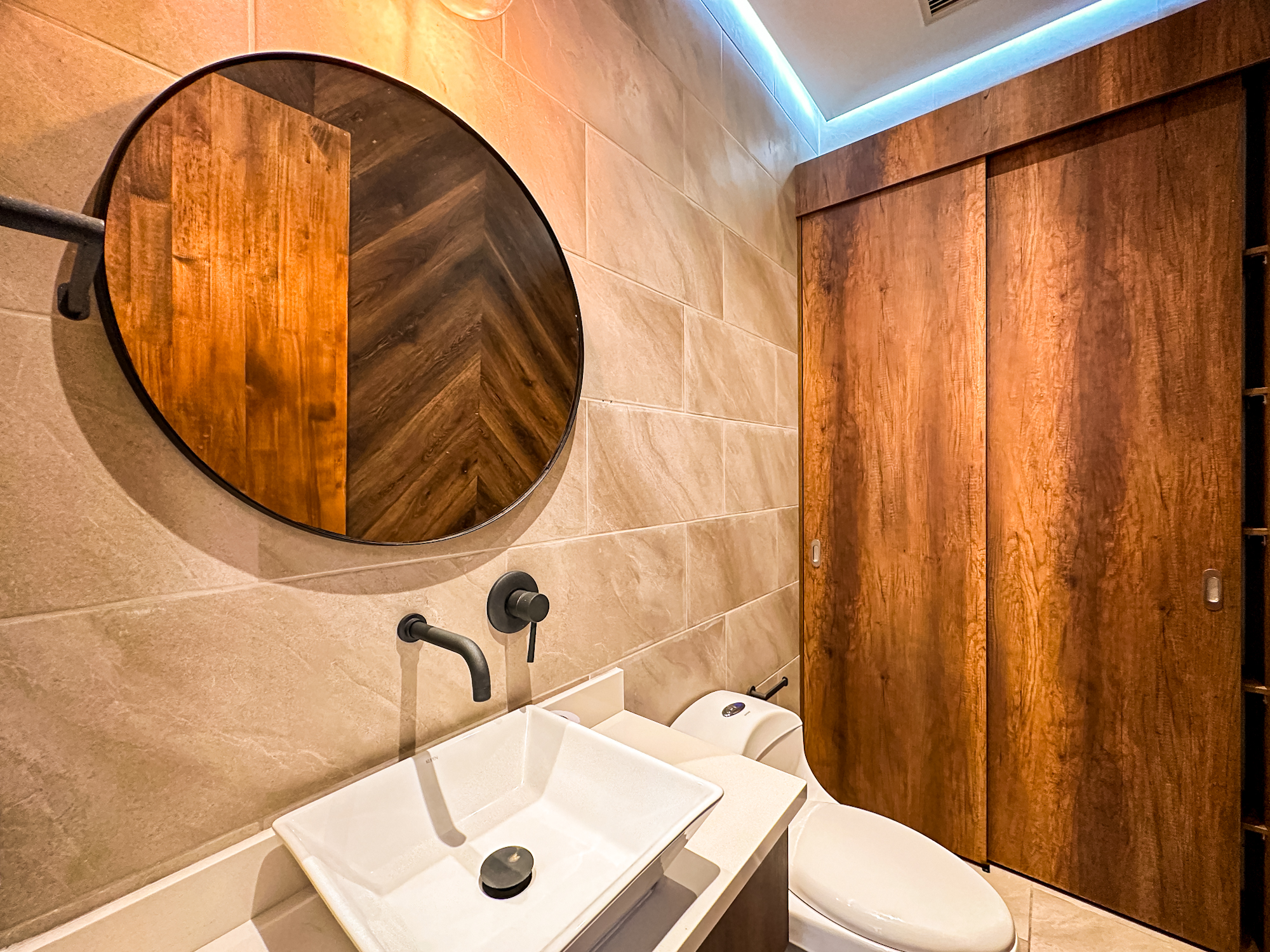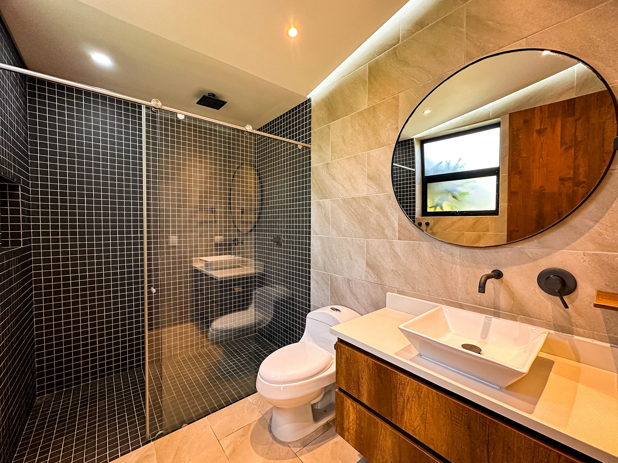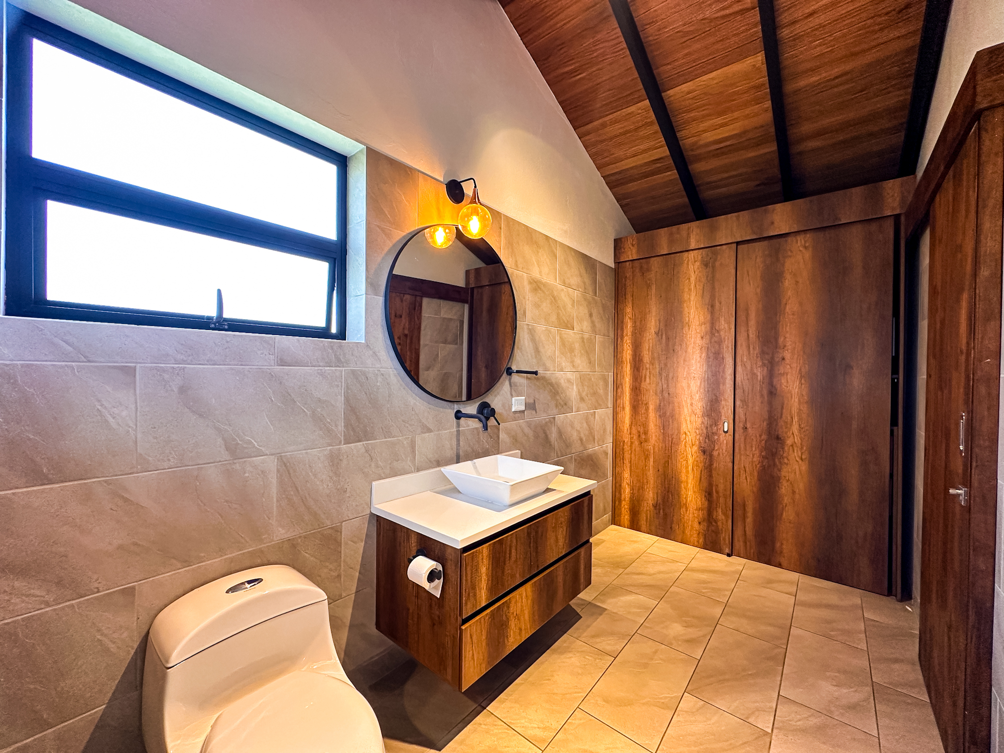 • 3 habitaciones, cada una con baño y vestier.