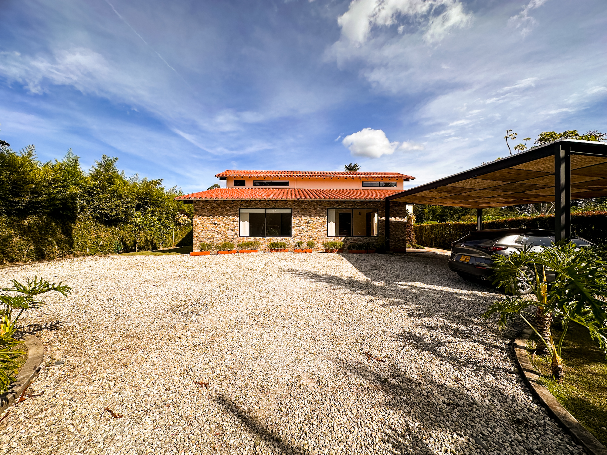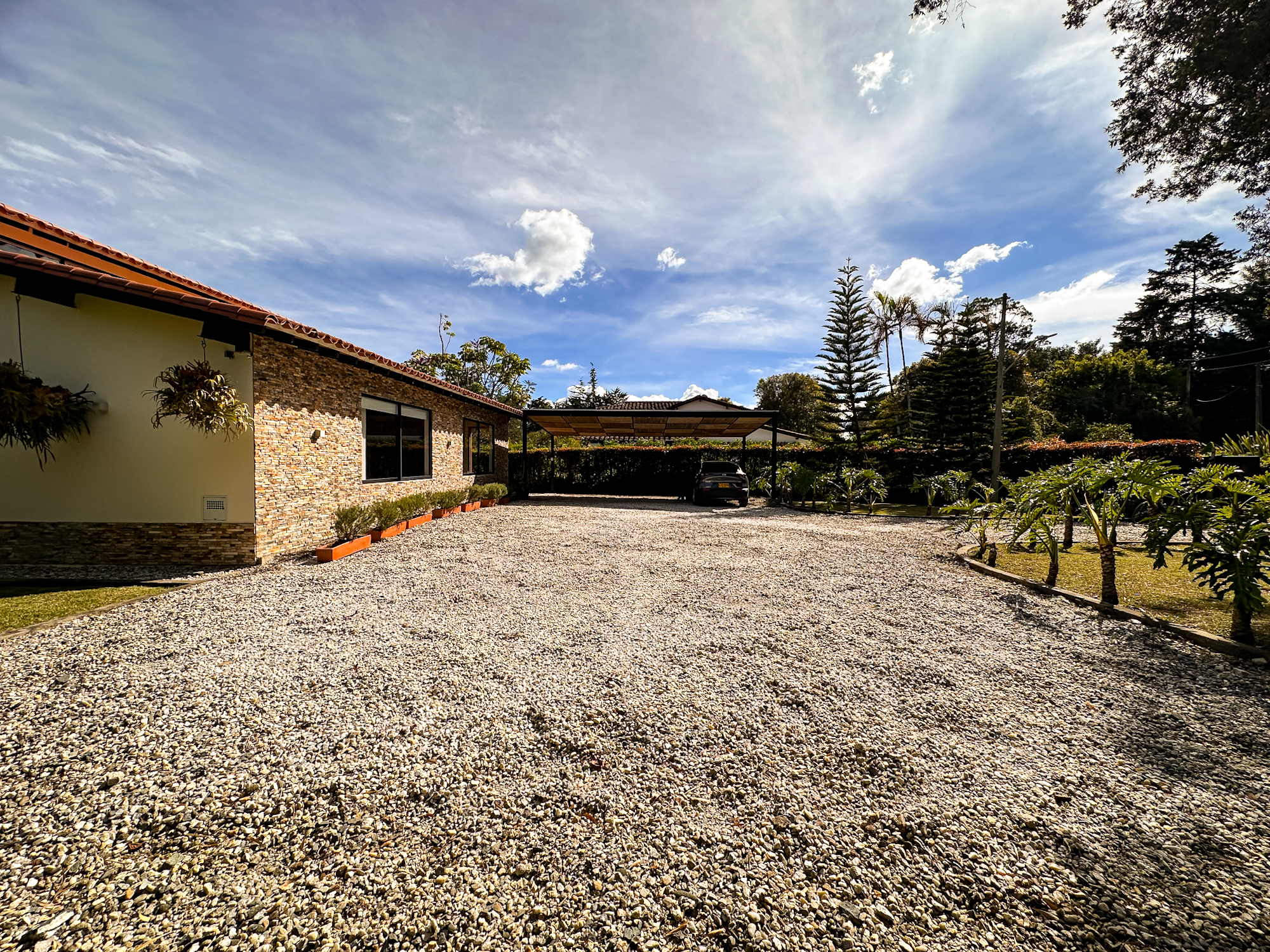 • Parqueadero cubierto para 2 vehículos y descubierto para 5 o 6 más.