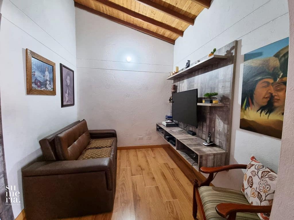 Casa de 2 niveles ubicada en San Antonio de Pereria, cerca a colegios, locales comerciales y a solo 5 minutos del parque principal, cuenta con 4 habitaciones 4 baños, cocina integral, sala comedor, sala de TV, chimenea, mansarda, biblioteca,patio interno y garaje.