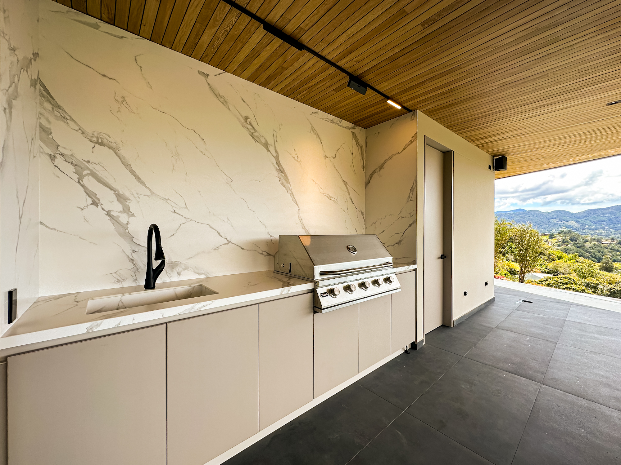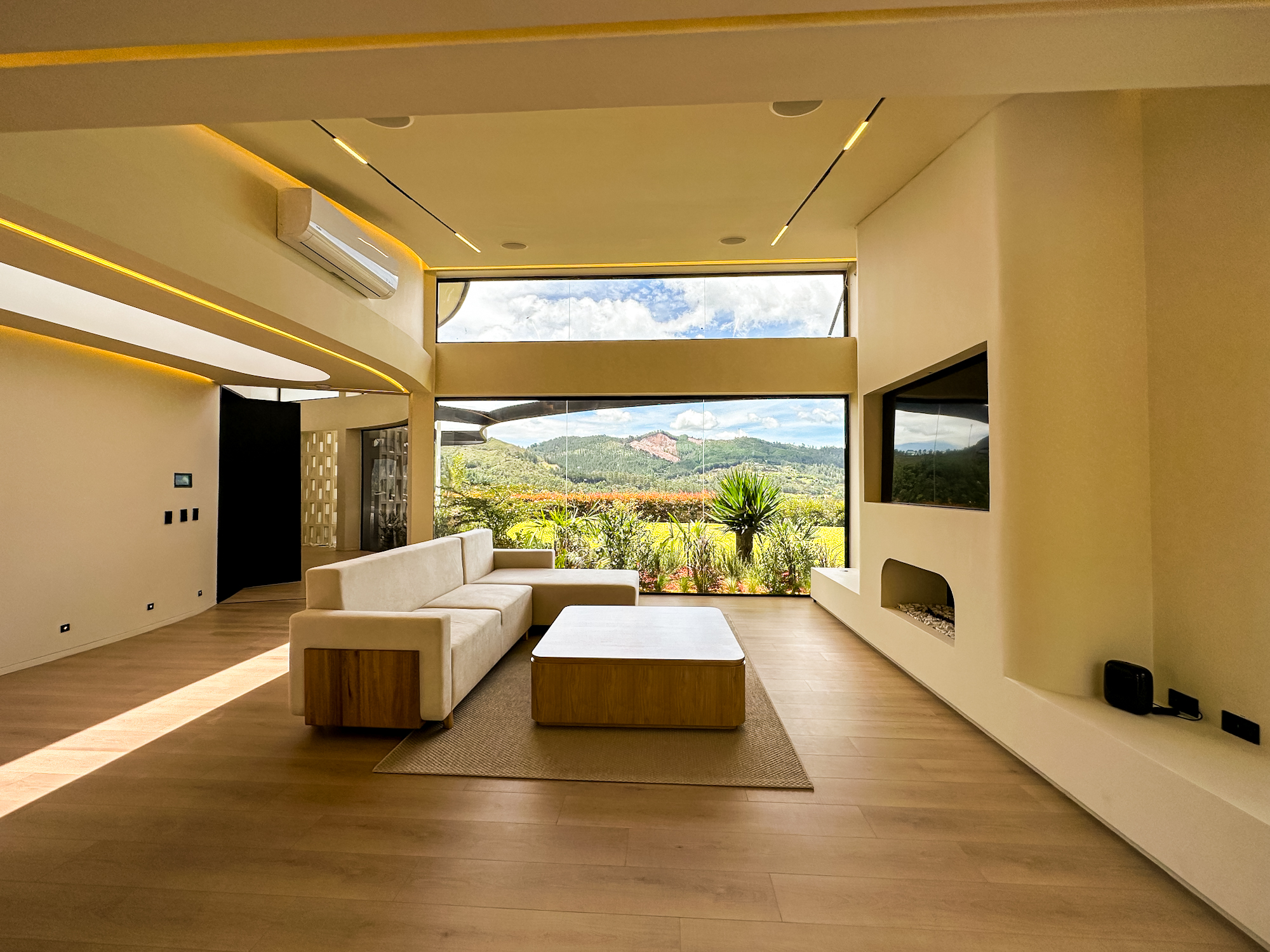 Dispone de 4 habitaciones, 4 baños completos y un baño social, junto con 4 chimeneas automatizadas que aportan calidez a cada espacio. La cocina está totalmente equipada con electrodomésticos de lujo y la casa se entrega amoblada, incluyendo sistema de sonido.