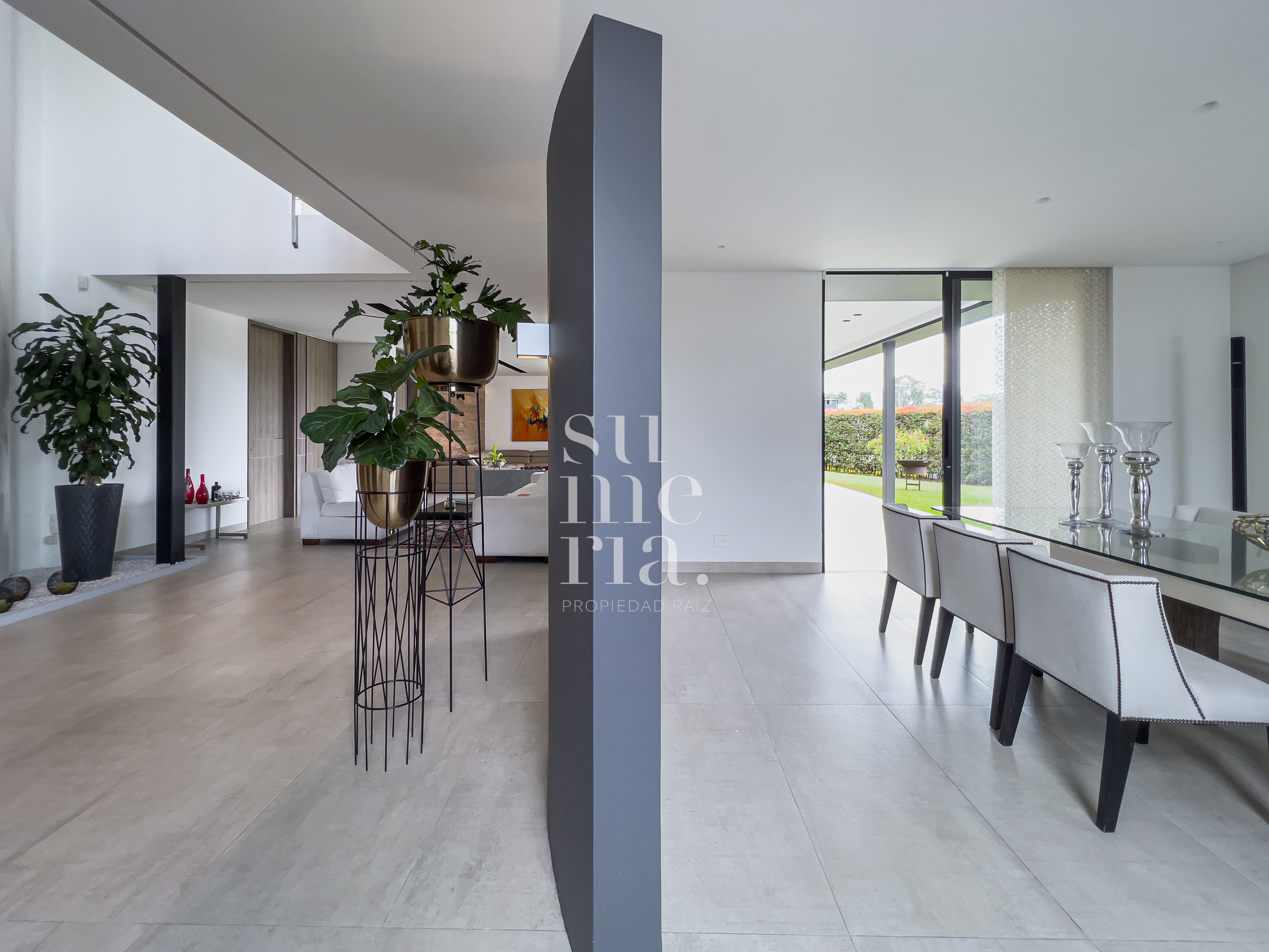 Decir lujo y llanogrande es redundante, pero en esta caso en particular, no. Para empezar, esta casa de dos niveles permite aislar la zona privada de la zona social. En el primer piso tiene sala de cine profesional para 6 personas, gimnasio, jacuzzi, habitación de invitados, y 2 habitaciones para tus colaboradores. En el segundo nivel 4 habitaciones con baño y vestier cada una. Además, la casa cuenta con tres parqueaderos cubiertos, y espacio descubierto hasta para diez vehículos más.