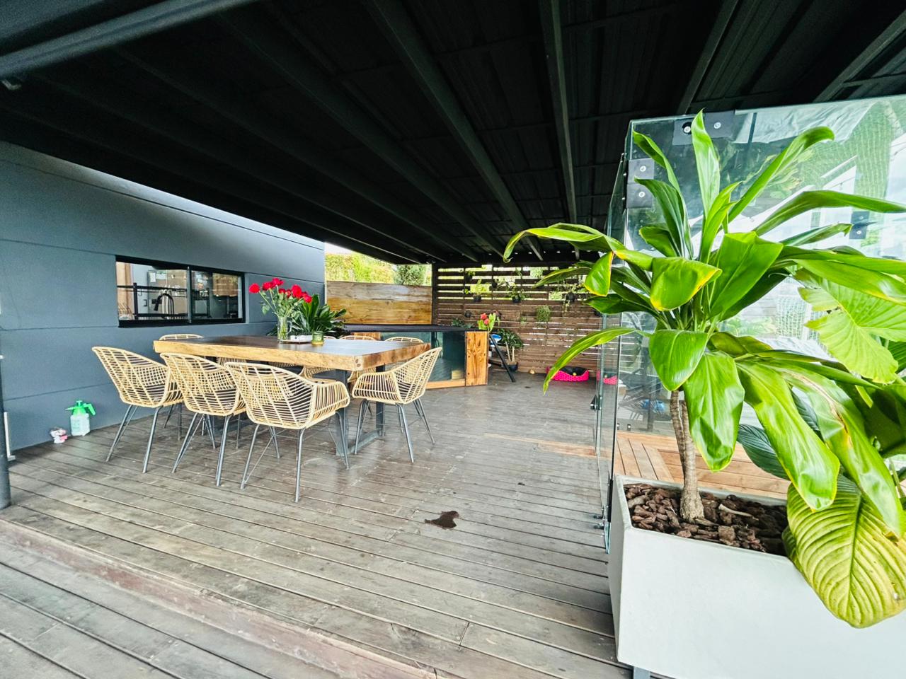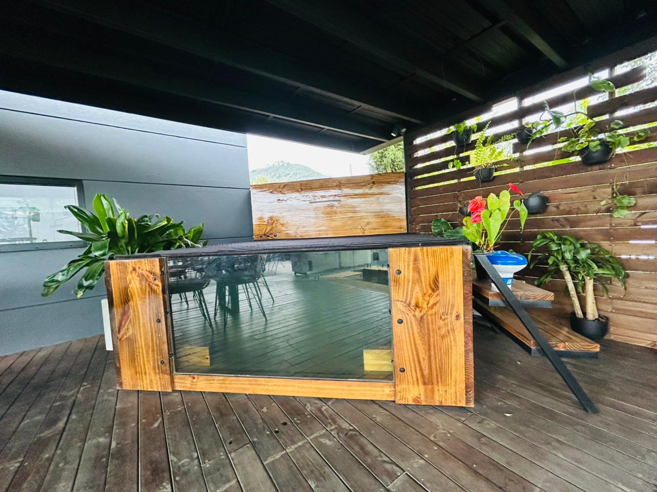 En la planta de acceso se encuentra una amplia sala con balcón, cocina integral, comedor, baño social, cuarto de ropas y una increíble zona húmeda que incluye sauna, baño y jacuzzi para 10 personas. Además, dispone de una terraza de 50 m², zona verde con comedor al aire libre y malla catamarán.