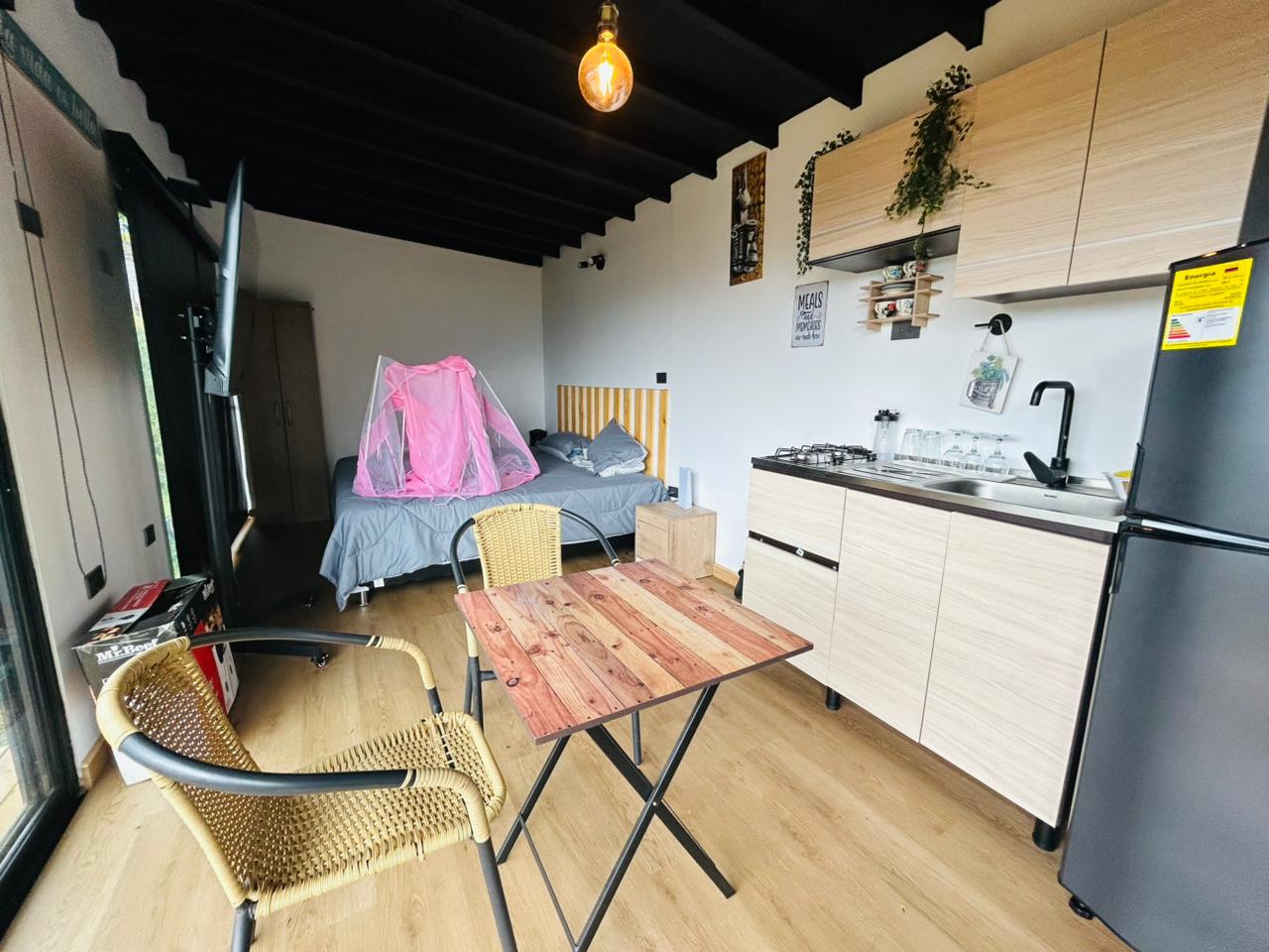 Adicionalmente, la propiedad cuenta con una cabaña independiente, ideal para huéspedes, que incluye habitación, cocina, baño, terraza y zona verde con árboles frutales.