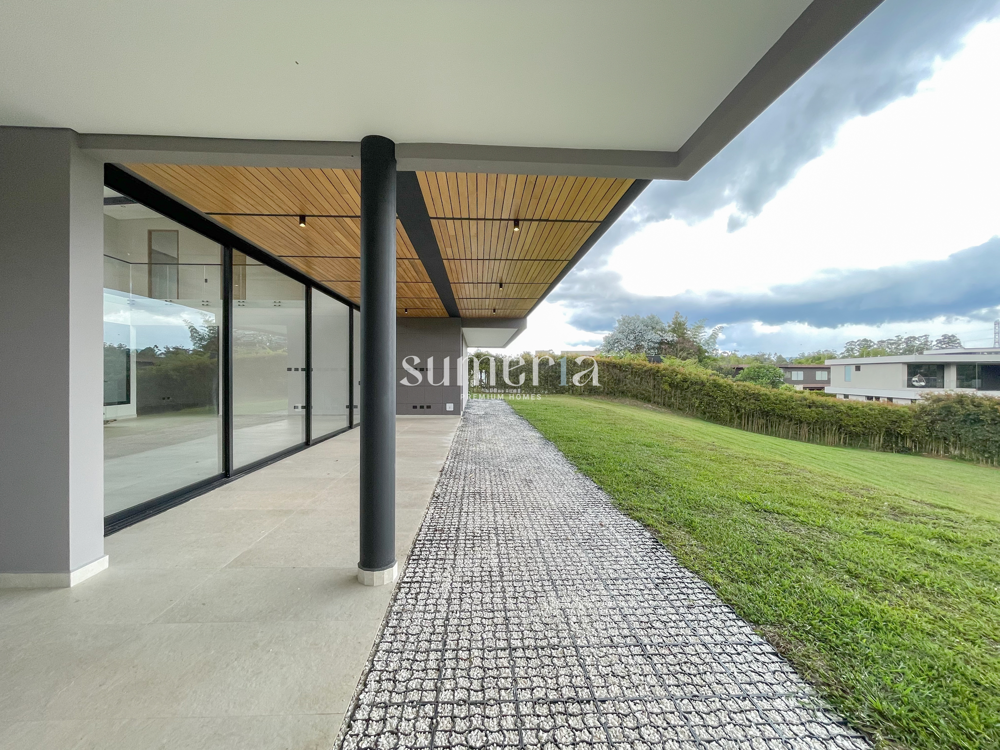Casa para estrenar en exclusiva parcelación de Llanogrande, cercana a la finca de Rigo. La propiedad cuenta con 4 habitaciones completas, 6 baños, cocina abierta con alacena, sala-comedor con terraza, zona de lavado independiente, estudio y parqueadero cubierto para 6 vehículos.
